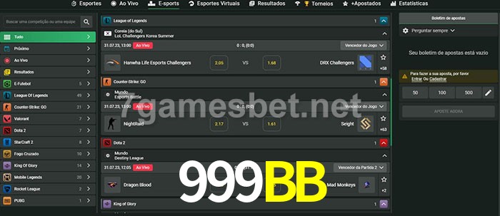 A aposta 999BB oferece aos jogadores a experiência mais conveniente de apostas em eSports!